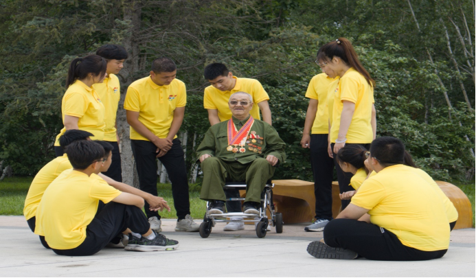听着白乌力吉图爷爷英勇拼搏的故事,望着他依然斗志昂扬的表情,队员仿佛身临其境。今天的我们可能无法感受当时战争之残酷,环境之艰难,听完了白乌力吉图爷爷的讲述,队员们明白今天的和平来之不易,没有他们当年的无私奉献,就没有我们今天的幸福生活,向老兵致以最崇高的敬意!