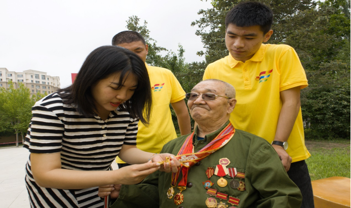 一枚枚金光闪闪的荣誉纪念章,无声无息地诉说着他在战场上辉煌的过往。92岁高龄的白乌力吉图爷爷热情为直属队队员们讲述他年轻时的军旅故事,他说印象最深刻的就是抗美援朝战争。