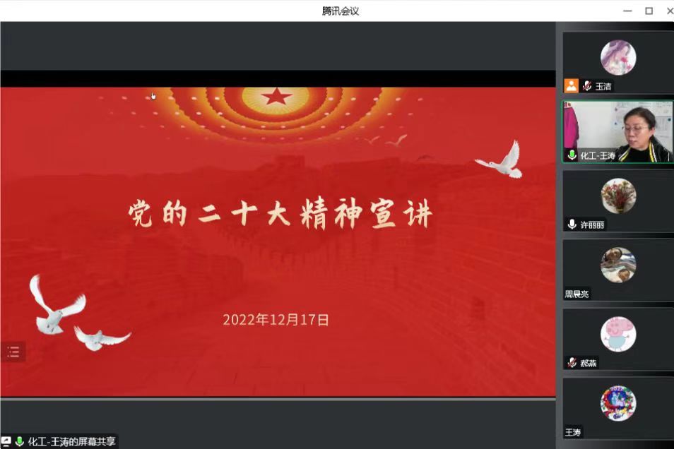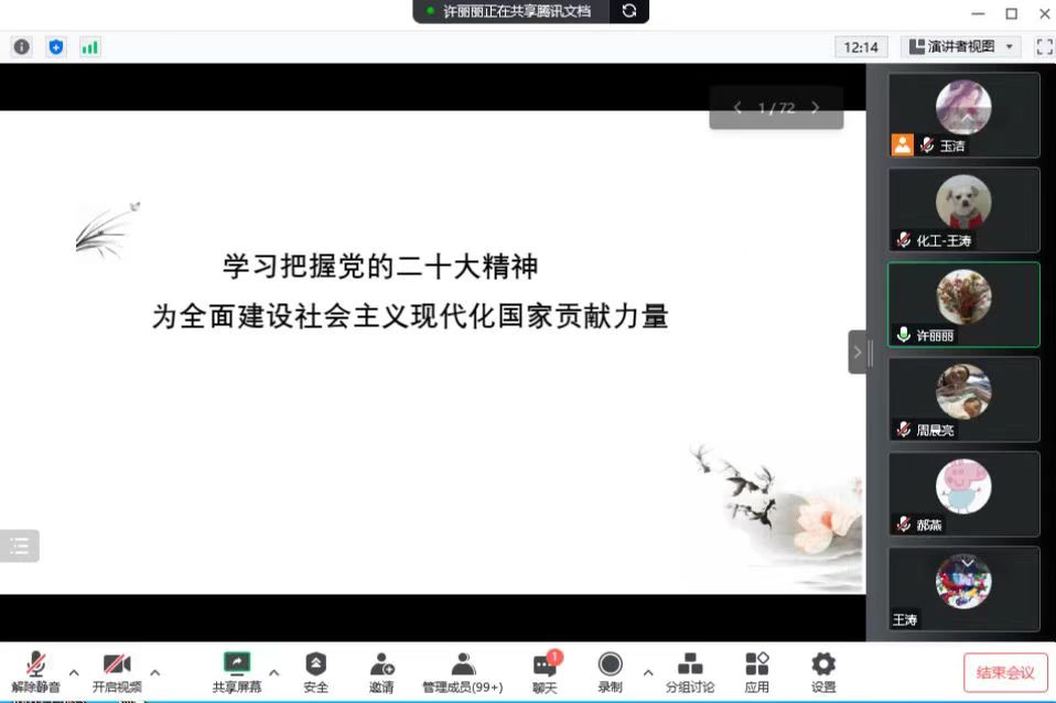 为深入学习宣传贯彻党的二十大精神,提高政治站位,坚持正确政治方向,按照《beats365官方网站学习贯彻党的二十大精神宣讲工作方案》要求,12月17日下午15:00,beats365邀请公司党的二十大精神专题宣讲团成员、beats365官方网站科技处副处长许丽丽开展党的二十大精神专题宣讲。讲座通过线上腾讯会议的方式进行,由公司党委副书记副经理王涛主持,学院全体教职工、全体员工党员及入党积极分子参加。
