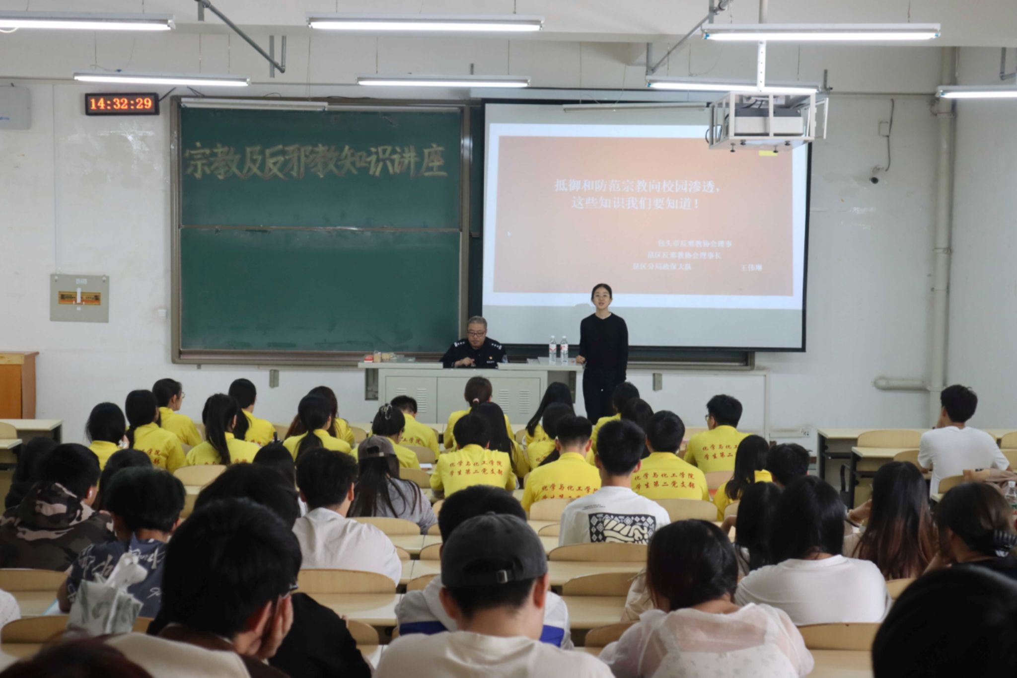 为加强反邪教教育,提升员工防范与抵制邪教的意识,公司于2024年4月25日下午,在逸夫楼G301教室举办了一场宗教与反邪教知识讲座。此次活动特别邀请了包头市反邪教协会理事王伟琳警官进行现场讲解,学院各班级代表共100余人参加讲座。