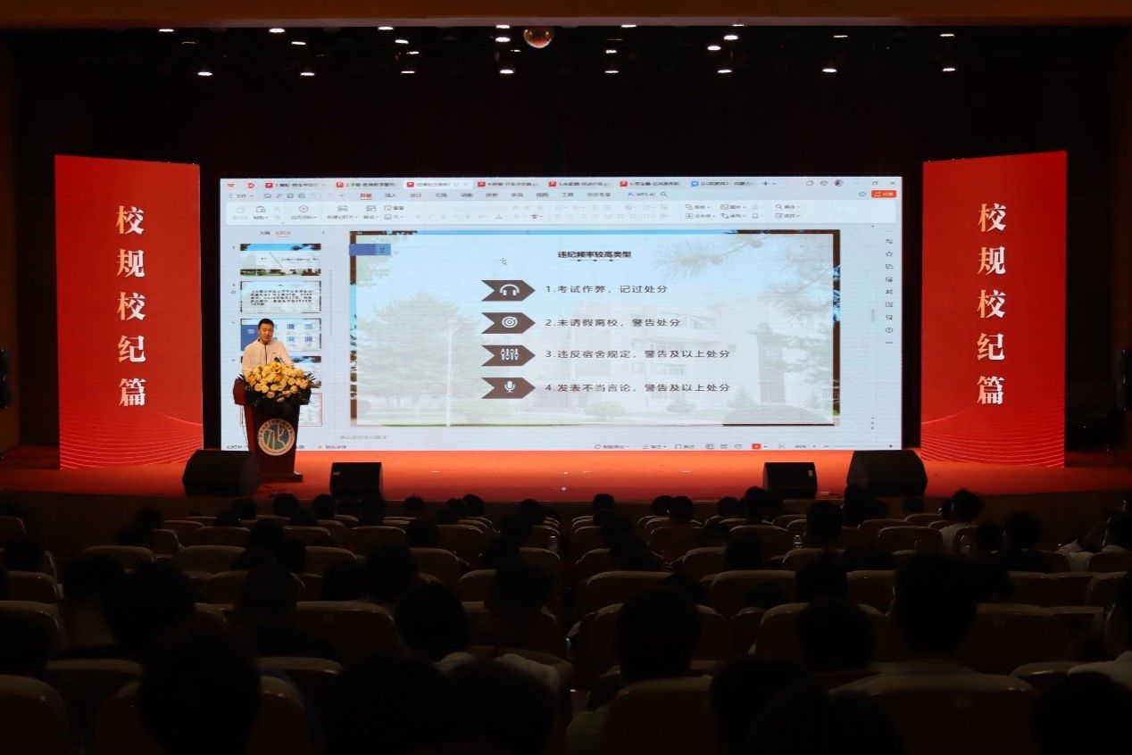 在校规校纪篇,学工办负责人樊易解读了《beats365官方网站员工纪律处分实施办法》、《beats365官方网站员工考试(考核)违纪作弊处理细则》和处分解除流程,并对新生进行警示教育,增强同学们的规矩意识,为同学们养成自觉遵守校规校纪的良好习惯奠定了坚实基础。
