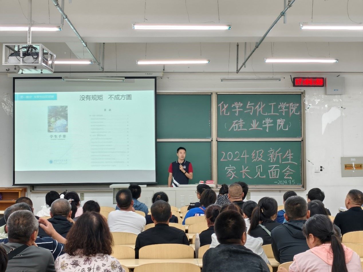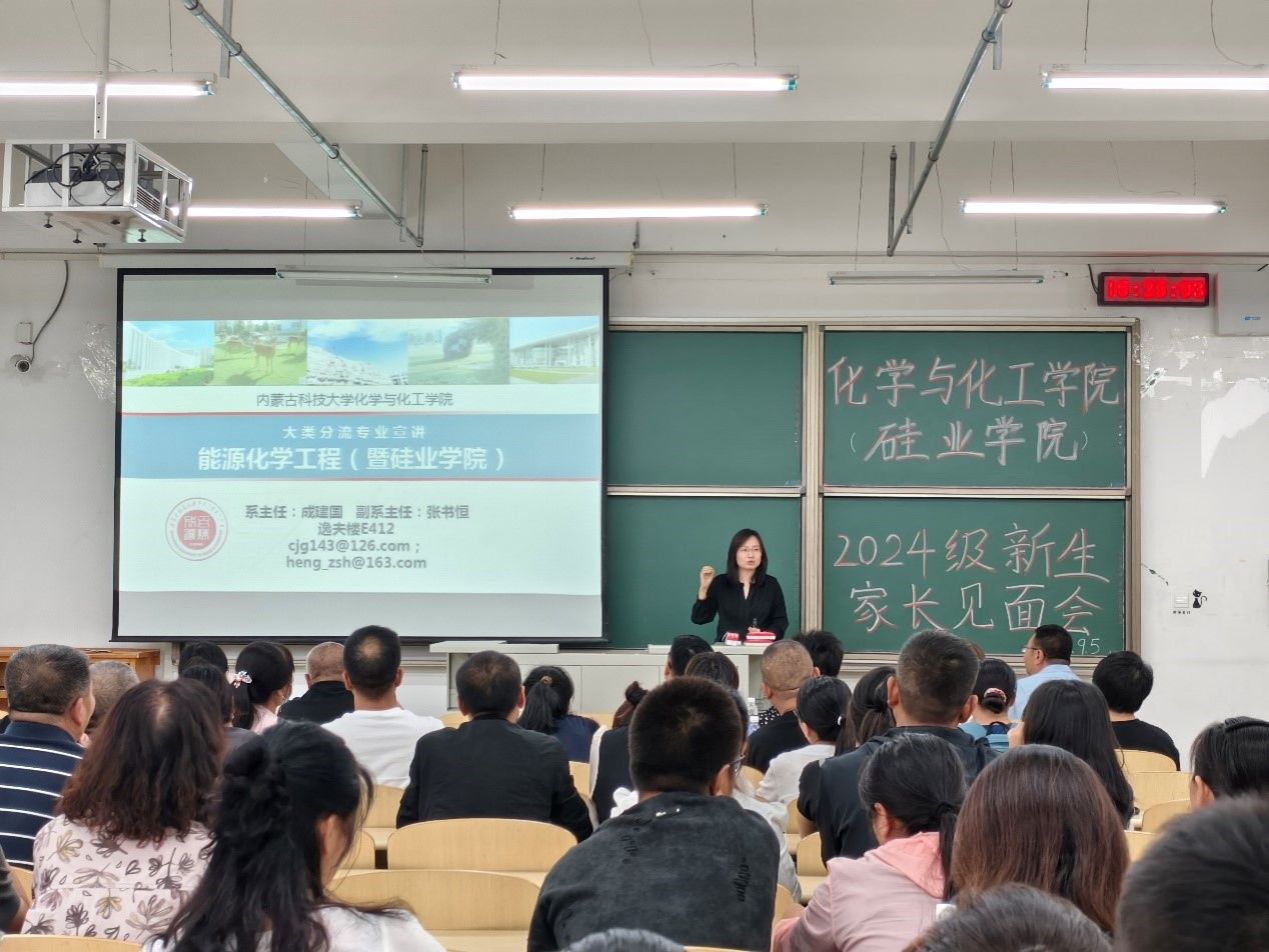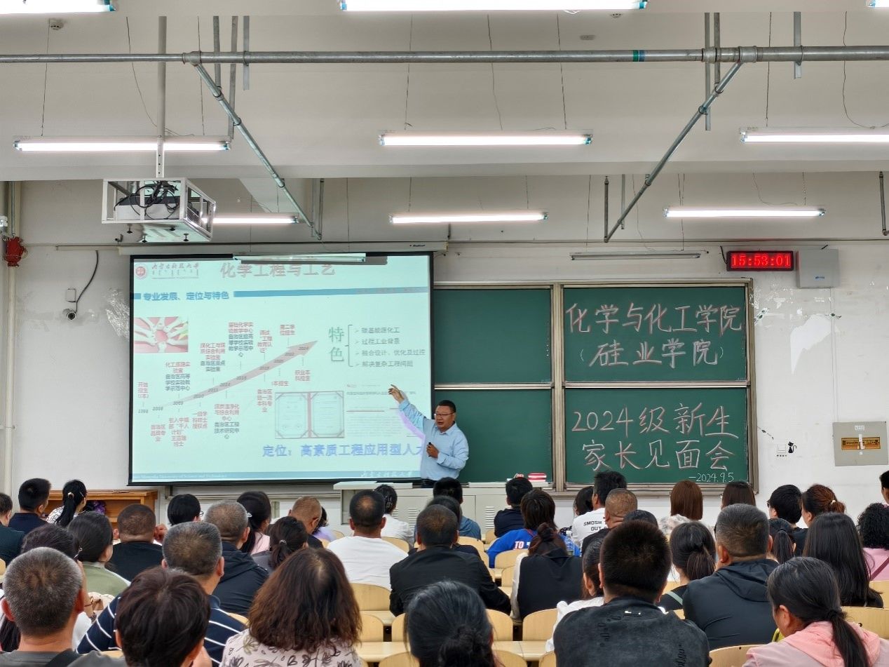 随后,化学工程与工艺系、能源化学工程系和应用化学系负责人周晨亮、张书恒和李冬梅分别围绕专业发展、课程特色、团队力量、教学科研平台、科技创新、毕业生就业升学去向等方面向家长们做详细介绍,让家长们充分了解各专业的团队力量、教学设施及为员工提供的学习平台和实践机会。