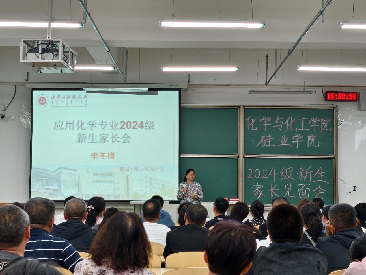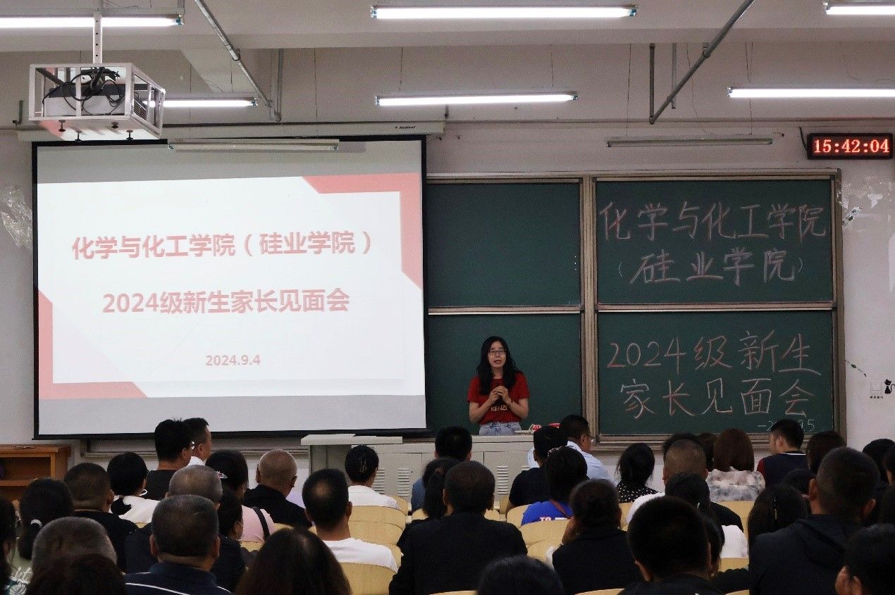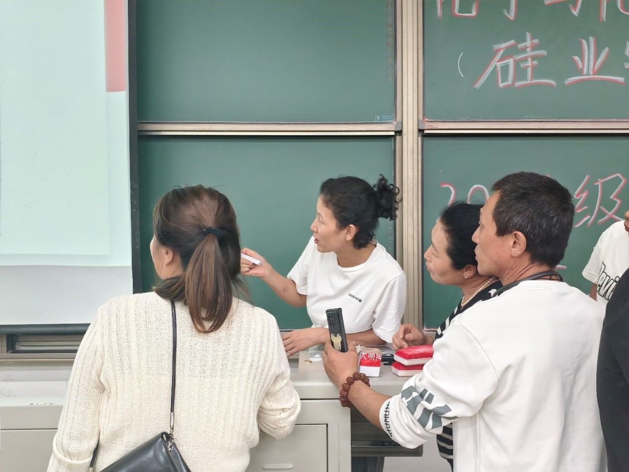 随后,化学工程与工艺系、能源化学工程系和应用化学系负责人周晨亮、张书恒和李冬梅分别围绕专业发展、课程特色、团队力量、教学科研平台、科技创新、毕业生就业升学去向等方面向家长们做详细介绍,让家长们充分了解各专业的团队力量、教学设施及为员工提供的学习平台和实践机会。