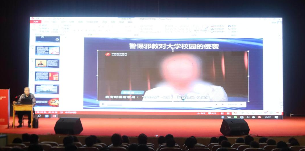 昆区公安分局政保大队民警、包头市反邪教协会理事王伟琳作宗教政策与反邪教专题宣讲,通过政策解读、案例剖析和互动问答等形式,系统阐释邪教组织的危害特征及识别方法,引导学生树立正确的宗教观,提升防范意识,筑牢校园安全防线。