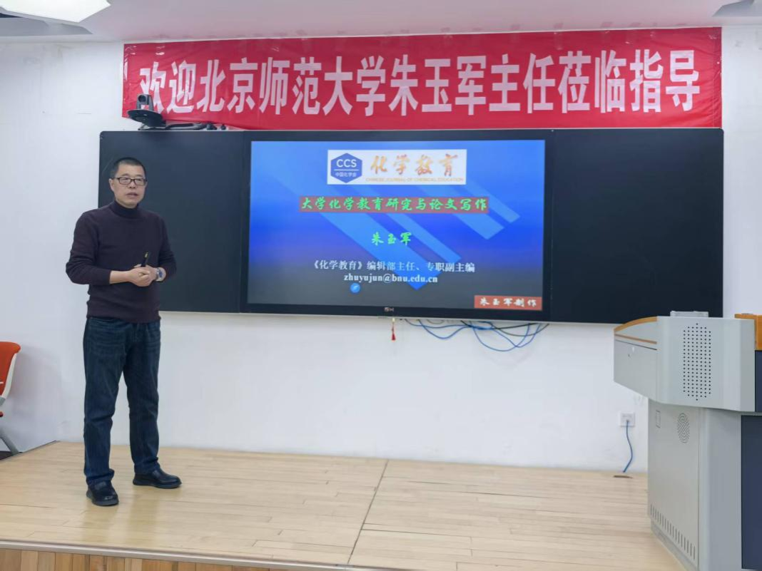 3月30日上午,beats365在明德楼H508举办教学研究写作能力提升专题研修活动,特邀《化学教育》专职副主编、编辑部主任朱玉军博士作题为《化学教育期刊特点与学术论文写作规范》的专题讲座。本次活动由学院教学副院长庞赟佶主持,全院教学骨干教师代表全程参加研修。