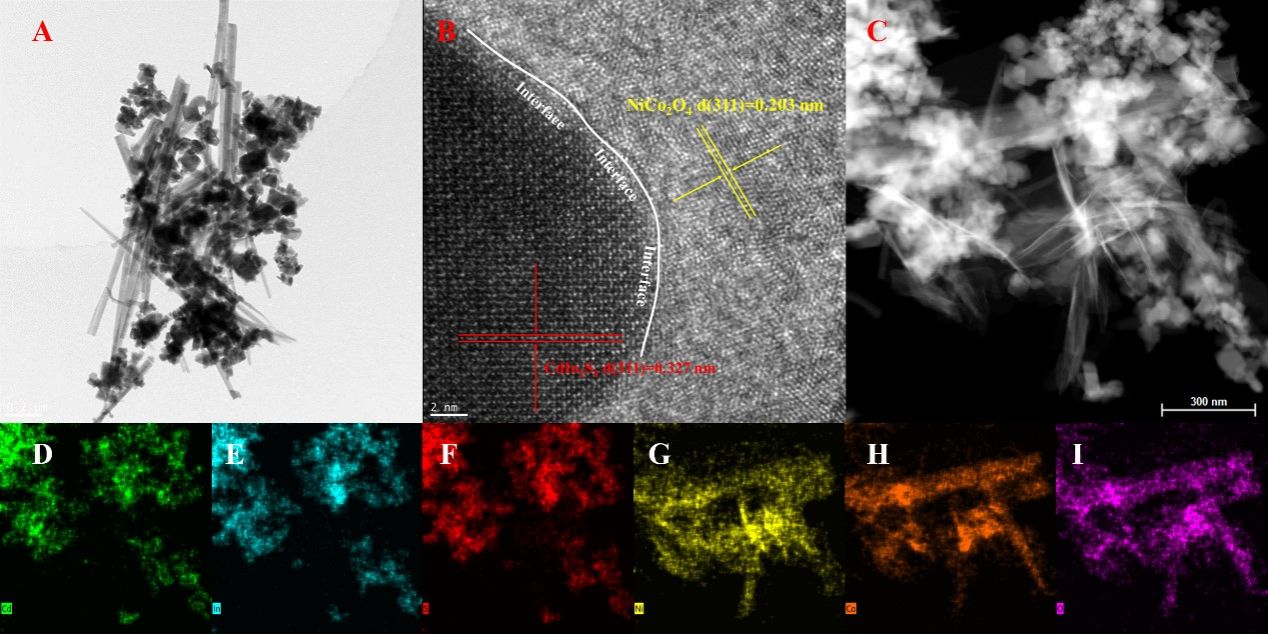 光催化水裂解产氢技术被认为是解决能源短缺和环境污染的最终途径。贵金属改性能极大的提高半导体的产氢活性,但其成本较高,开发经济高效的不含非贵金属的光催化剂十分必要的。基于此,马晓辉博士首次设计并制备了具有氧化还原中心的新型无贵金属NiCo2O4/CdIn2S4S型异质结光催化剂。
